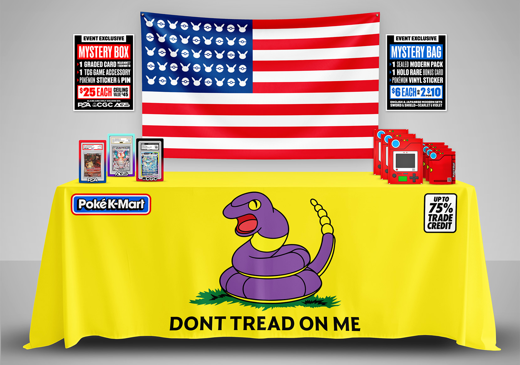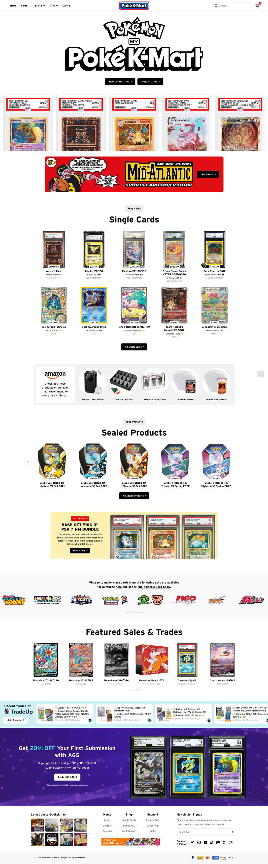 In 2023, I founded Poké K-Mart to turn my passion for Pokémon card trading into a personal brand. After creating a logo/visual identity, I built a custom eCommerce WordPress site that continues to evolve, complemented by fresh printed materials and unique displays for my dealer tables at card shows and collector events.
