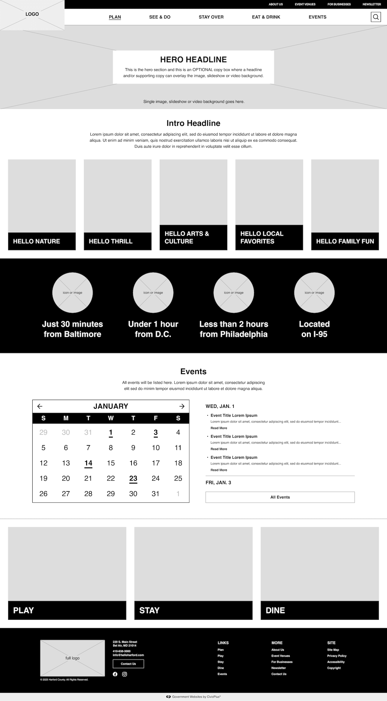 Redesigned the Harford County website, tailored to the CivicPlus CMS web platform for government agency websites.
