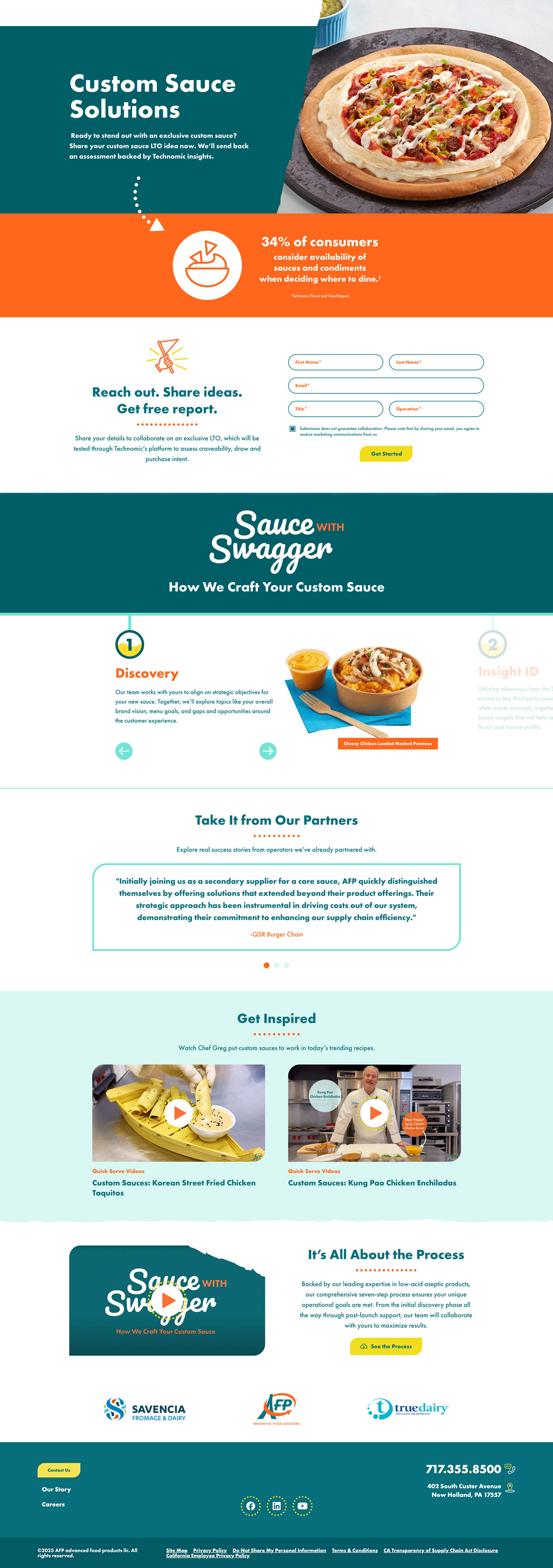 Designed mobile-optimized landing page and banner ad [resizes] for AFP LLC's Custom Sauce Solutions digital campaign.