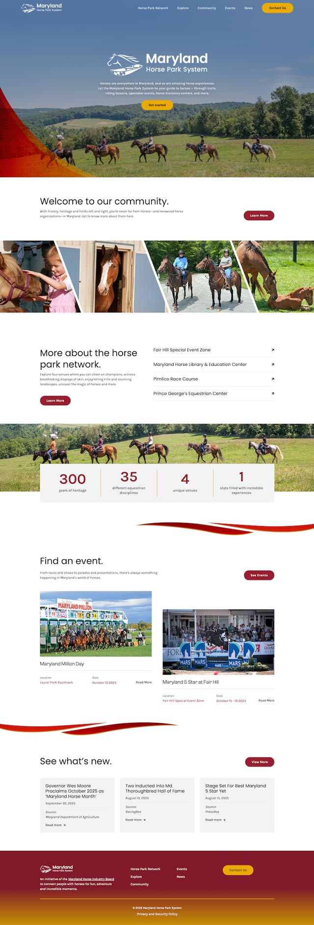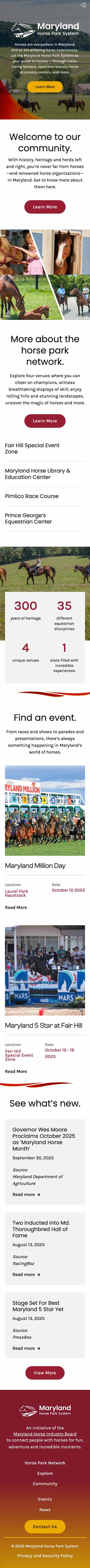 Designed a new website for the Maryland Horse Park System, utilizing the Webflow platform and template customization.