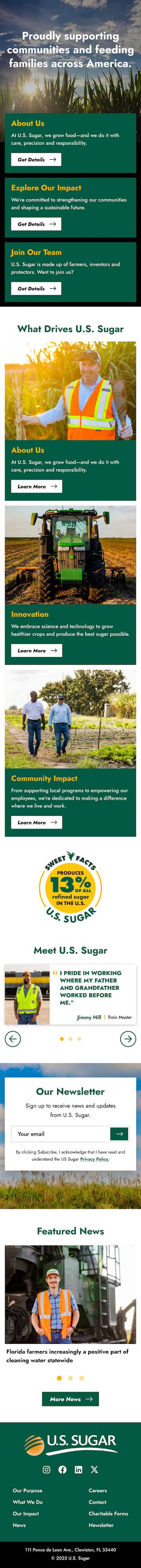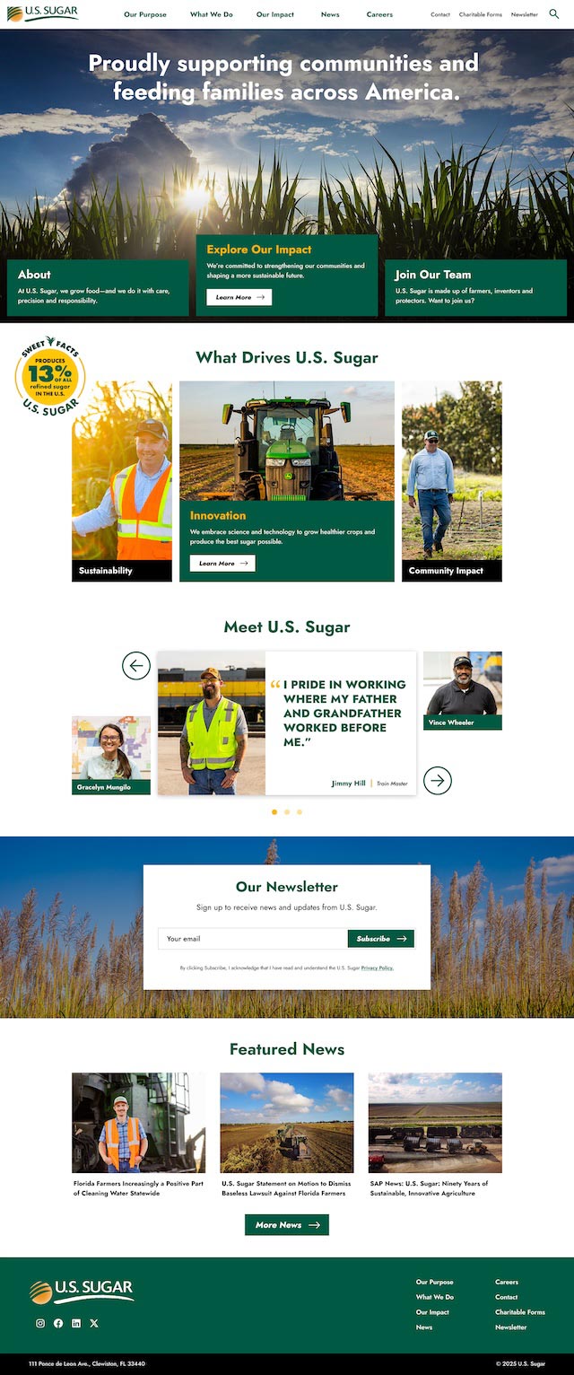 Designed a mobile-optimized website for U.S. Sugar. Created a web design system, component library, and multi-media assets.